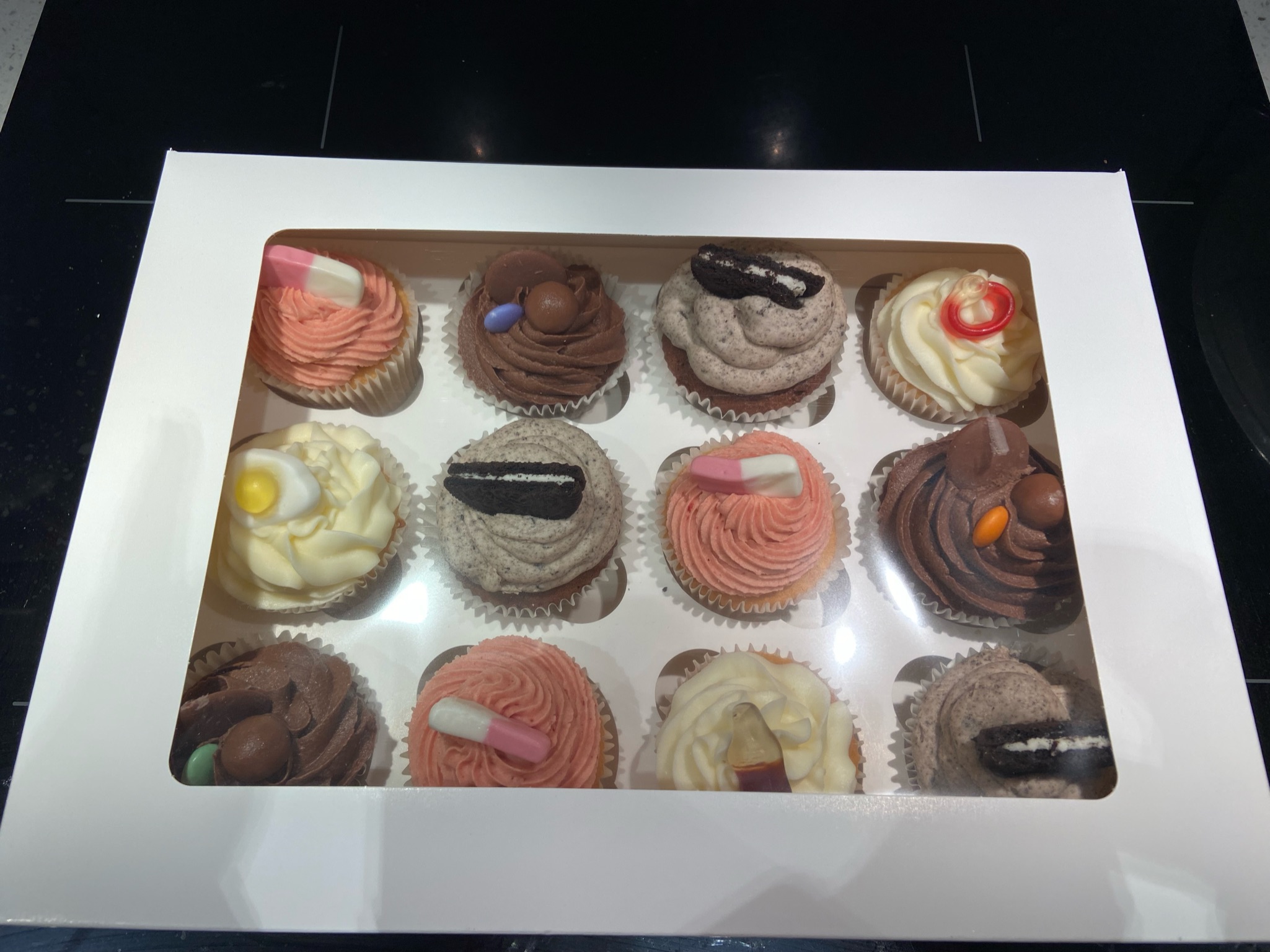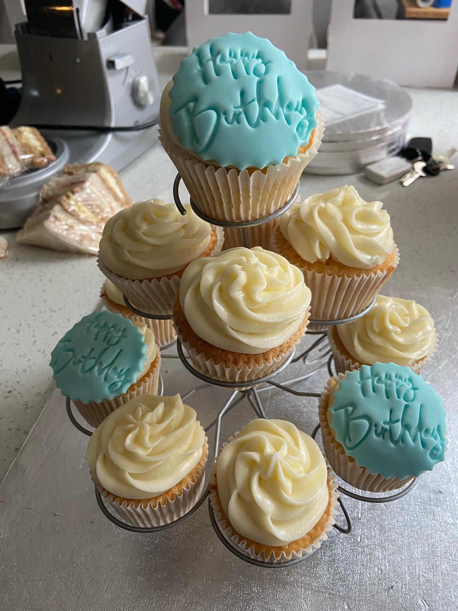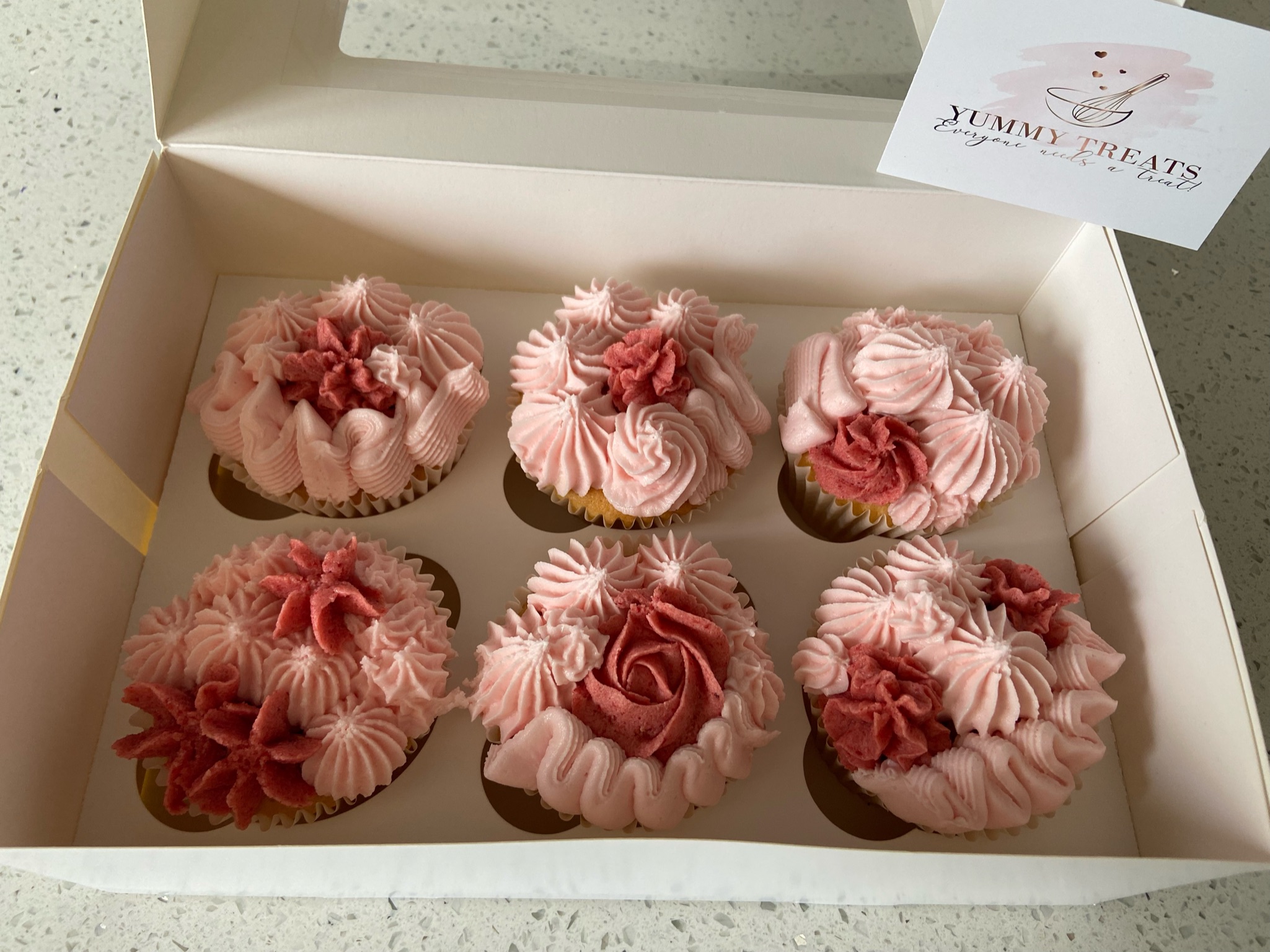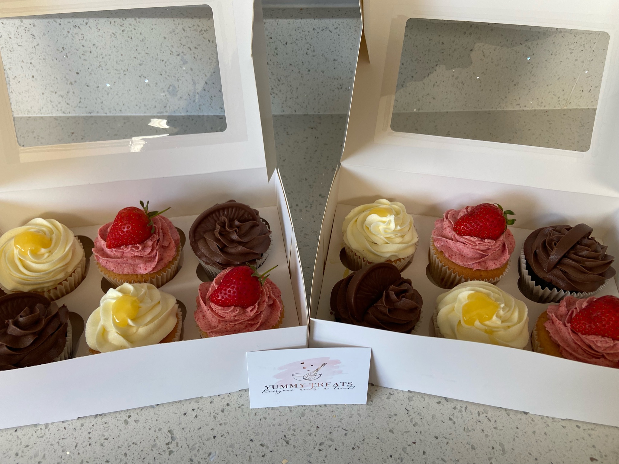 I love making cupcakes, so many flavours and designs. They are a great way of sharing with people, for a party, gathering, business meeting or to give as a gift, when sometimes a cake is just too big!! The flavours of cupcakes you can choose from are; chocolate, vanilla, strawberry, lemon, ginger, oreo, red velvet, or other flavours upon request. The cupcakes can be topped with either butter icing or a fondant creation.